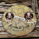 Avast, ihr Schmierer! Zieh mir Holz! Perfektes Gepäck für Ihre Jolly Flitterwochen in einer Piratenhochzeit. Mit einer passenden Piratenflagge für die Piratenbrücke und den Piratenraum auf einem uralten Pergamentboden, der mit einem Oktopus um jeden herum dekoriert ist.Persönlich mit den Namen der Braut und des Bräutigams und dem Datum.Savvy?