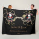 Avast, ihr Schmierer! Zieh mir Holz! Ideal für Ihre fröhliche Crew in einer Piratenhochzeit. Mit einer passenden Piratenflagge für die Piratenbrücke und die Piratengroom auf einem dramatischen, schwarzen Hintergrund mit einem Oktopus um jeden einzelnen. Persönlich mit den Namen der Braut und des Bräutigams und dem Datum.Savvy?