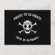 "Pirate to co-pirate - komm in co-pirate!" Text in Knochenschrift, mit einer Piratenflagge in einem Lederhelm und einer Brille. B/W Grafik, auf T - Shirt, Hoodies, Karten, Geschenke.