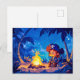 Eine zauberhafte Szene im Comic eines kleinen Piraten, der an einem knisternden Lagerfeuer an einem Sandstrand unter schwindenden Palmen sitzt. Der Pirat blickt gedanklich in das Feuer, wenn der Mond über das Meer steigt, und schafft so eine friedliche, aber abenteuerliche Atmosphäre. Ideal für Kindergeschichten und abenteuerliche Illustrationen.