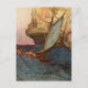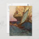 Ideal für "Talk LIke a Pirate Day" am 19. September! Auf dieser Postkarte befindet sich ein Vintages Bild von Howard Pyle, in dem ein Piratenschiff auf dem rollenden Meer mit einer Crew in einem Langboot mit Segel dargestellt wird.