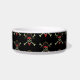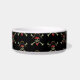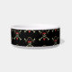 Diese Haustierschüssel wird im Weiß mit einem schwarzen Akzentstreifen mit einem niedlichen Piratendruckentwurf gezeigt.