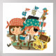 Zwei Piraten und ein Papagei mit Schädelkappen, ein Piratenschiff mit Schädel- und Kreuzknochenfahnen, eine Schatztruhe mit Goldmünzen und Juwelen, ideal für Piraten jeden Alters. T - Shirt, Bikes, Tasse, Karten, Aufkleber, Schlüsselketten, Kissen, Pflaster, Magnete, Wanduhren und vieles mehr.