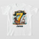 Dieses lebendige Design des T - Shirt besticht durch eine große, fette Zahl '7', die mit einem klassischen Piratenhut, einem Schädel und Kreuzknochen-Emblem geschmückt ist und ein Thema der Erkundung und des Abenteuers nahe legt. Unter der Zahl befindet sich ein Pirat-Cartoon-Pinguin neben einer Schatztruhe, die von Gold und Juwelen überflutet wird und den Entdeckungsgeist verkörpert. Im Hintergrund segelt ein traditionelles Piratenschiff auf ruhigen Gewässern und verstärkt damit das maritime Thema. Der Name "James" wird am unteren Rand deutlich sichtbar angezeigt, indem dem T - Shirt eine persönliche Touch hinzugefügt wird, was darauf hindeutet, dass er einen besondere Anlass feiern kann, z. B. einen 7. Geburtstag, für jemanden namens James. Das Design verbindet spielerische Elemente mit einem Gefühl der Aufregung und personalisierten Charme und ist somit ideal für junge Abenteurer.