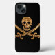 Goldfarbener Schädel und gekreuzte Schwerter. Für den diskriminierenden Piraten. Bitte beachten Sie, dass dies ein Bild ist, nicht echtes Gold.