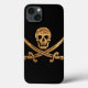 Goldfarbener Schädel und gekreuzte Schwerter. Für den diskriminierenden Piraten. Bitte beachten Sie, dass dies ein Bild ist, nicht echtes Gold.
