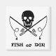 Die klassische Piratenflagge Schädel und Kreuzknochen, aber mit gekreuzten Angeln. Unter dem Titel "Fisch oder die!"