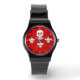 PIRATENFLAGGE SKULL UND DREI LILIES FLAG, rot Armbanduhr