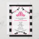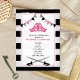 Eine Geburtstagsfeier mit einem Piratenthema. Invite hat eine Illustration von einem rosa Raubhut oben und zwei Schwertern unten. Einladend bietet auch Bunt oben und einen gestreiften Hintergrund. Personalisieren Sie den Text mit Details zu Ihrem Anlass.
