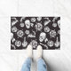Weiße Grafik von Schädeln und Pirat-Elementen auf schwarzem Hintergrund, nahtloses Wiederholmuster