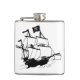 Der Vinyl-umhüllte Kolben mit dem Bild eines zeichnend Piratenschiffs, das einen Schädel und eine Kreuzknochenflagge auf Weiß führt. Siehe dazu passende Süßigkeiten, Espressotasse, Tasse, Krug, Papiertüte, Kugelglas, Teekanne und Untersetzer. Sehen Sie sich die gesamte Shipwreck Flask-Sammlung im NAHRUNGSMITTEL/BEV an. | Abschnitt Geschirr. Hinweis: Die Option Vorderseite, ungeöffnete Anzeige wurde von Zazzle mit einer leichten Neigung fotografiert, sodass das Bild aus der Mitte erscheint. Die Vorderseite, die Anzeige geöffnet, wurde jedoch korrekt fotografiert. Hier wird das Bild zentriert. Das Bild wird auch in der "In-situ"-Anzeige-Option zentriert.