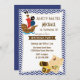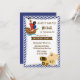 Einladung zum Geburtstag mit Piratenthema und marineblau Hintergrund.