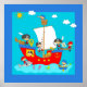 Piratenschiff mit Kindern, die Zuhause mit Schatz zurückschicken.