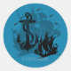 Piratenschiff und Anker Schwarze Silhouette 2 Runder Aufkleber