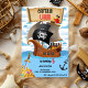 Ahoy, Matey! Mit dieser lustigen Einladung bereiten Sie sich auf eine abenteuerliche Geburtstagsfeier zum Thema Piraten vor. Mit einem Piratenschiff, einem Schatz und einem Papagei ist dieses Design perfekt für kleine Kapitäne, die auf ihrem besonderen Tag segeln. Personalisieren Sie es mit dem Namen, dem Alter und den Party-Details für ein waschkitzliges Fest.
