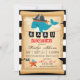 Piratenwal und Seesterne mit alten Kartenrollen und schwarz-weiß gestreiftem Hintergrund Baby Duschkarte Design.