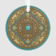 Dieses Fisch-Thema Mandala zeigt einen Aquamarinstein, umgeben von dem Symbol für das Zeichen, die Konstellation, und das alchemistische Symbol für Wasser zwischen Filigree und Weber.