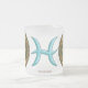 Dieses Fisces themed mandala verfügt über einen Aquamarinstein, umgeben von dem Symbol für das Zeichen, die Konstellation, und das alchemistische Symbol für Wasser zwischen Filigree und Weber. Andere Größen und Stile der Tasse sind vorhanden, wie z.B. Reisebügel und Steine.
