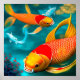 Ein Design, das ich mit einem KI-Programm (Artificial Intelligence) entworfen habe! Das Kunstwerk von zwei orangen koi Fischen schwimmen unter Wasser ist eine schöne Darstellung von Pisces Astrologie. Die orangefarbene Farbe der Koi-Fische symbolisiert Mut und Stärke, eine Eigenschaft, die die Fische besitzen. Die Bewegung der Fische unter Wasser ist ein Symbol für die natürliche Fähigkeit der Fische, sich an verschiedene Umgebungen und Umstände anzupassen. Die beiden Fische repräsentieren die Dualität des Pisces-Zeichens und zeigen die Fähigkeit der Pisces sowohl für Logik als auch für Emotion. Mit seinen lebendigen Farben und sanften Bewegungen ist dieses Kunstwerk eine atemberaubende Darstellung des Pisces-Zeichens.