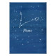 Ein Poster mit der Konstellation für Fische im Nachthimmel mit indigofarbenem Waschhintergrund. Spielplakat für Sie oder um einem Freund von Pisces zu geben. Die anderen Sternzeichen finden Sie auf einer Vielzahl von Artikeln in meinem Shop.