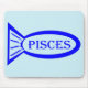 Dieses Mousepad verfügt über eine Kontur eines blauen Fisches mit hübschen Details im Inneren. Es gibt auch Text, der sagt, Pisces in der Kontur der Fische. Dieses Design ist ideal für Menschen mit Geburtstag zwischen 19. Februar und 20 März.