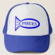 Dieser phantastische Hut zeigt eine Kontur eines blauen Fisches mit hübschen Details im Inneren. Es gibt auch Text, der sagt, Pisces in der Kontur der Fische. Dieses Design ist ideal für Menschen mit Geburtstag zwischen 19. Februar und 20 März.