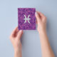 Ein Pisces Zodiac Sign auf einem Fuchsia Digital Camouflage Design Muster Printhintergrund. Ein modernes urbanes Design für eine großartige Geschenkidee zum Geburtstag. Verwenden Sie den Link "Diesen Designer Gefragt", um uns mit Ihren speziellen Designanfragen oder für Hilfe bei Ihren Anpassungsbedürfnissen zu kontaktieren.