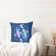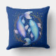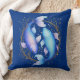 Kissen in einer Abbildung des Tierkreiszeichen Pisces mit zwei anmutig miteinander verflochtenen blauen und lila Koi-Fischen, die Dualität, tiefe Emotionen und eine Verbindung zu Träumen, Spiritualität und dem Unterbewussten widerspiegeln.