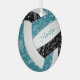Dieses niedliche Volleyballgeschmückte Dekor zeigt das realistische Bild eines Volleyballs mit aquamarinen, schwarz-weißen Paneelen und einem zarten Doodle-Muster aus Paislien, Blume und Federn in Weiß, die die aquamarinen und schwarzen Paneele überdecken - mit ihrem Namen vorne, Jahr für Jahr - von katz_d_zynes