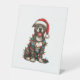 Pit bull Hund Weihnachtslicht Weihnachtsmannmütze Sockelschild