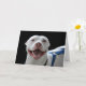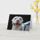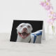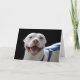 Weißer Grubenbulle mit einem Lächeln auf seiner Gesichtskarte