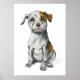 Diese Arbeit wurde mit Bleistift gezeichnet und dann digital mit Konte und Pastellfarben. Es ist ein zeichn eines Grubenbullen Welpen, der mit einem Lächeln auf seinem Gesicht sitzt. Er hat einen sehr sanften Gesichtsausdruck. Er ist weiß mit bräunlichen Mustern.