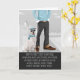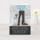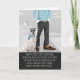 Ein stylischer weißer Pit Bull Hund sitzt neben seinem Menschen in einem Schal, Hut und Sonnenbrille auf dieser lustigen Rasse spezifische Vatertagskarte vom Hund.