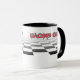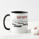 Pit Stopp Racing Crew Tasse - die Farben sind weiß, schwarz, rot und grau.