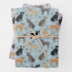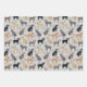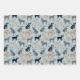 Niedlicher Pitbull mit schwarzen, braunen, blauen und roten Farben mit Pfotenabzügen und Hundeknochenmuster.