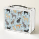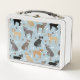Niedlicher Pitbull mit schwarzen, braunen, blauen und roten Farben mit Pfotenabzügen und Hundeknochenmuster.