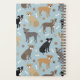 Niedlicher Pitbull mit schwarzen, braunen, blauen und roten Farben mit Pfotenabzügen und Hundeknochenmuster.