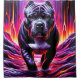 Dieser Duschvorhang hat einen niedlichen Pitbull darauf.