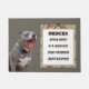 Dieses unglaublich witzig Doormat zeigt einen Drill Sergeant Pitbull, der die Bestellungen ausruft, die für den Eintritt in Ihre Zuhause erforderlich sind. Die gedruckten Bestellungen sind: "Stiefel abgewischt, K-9 geprüft, Leckerei hergestellt, Eintrag akzeptiert." Die Befehle werden auf einem Schild an der Wand mit einem Thema der Wüste Camouflage angebracht.