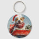 Pitbull Hund in Sledge Lass es Schnee Weihnachten Schlüsselanhänger