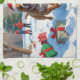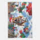 Pitbull Hund läuft im Schnee mit Weihnachtshut Geschirrtuch