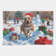 Ein kräftiger und spielerischer Pitbull schlängelt durch die verschneite Landschaft und trägt einen festlichen roten Weihnachtshut voll von Urlaubsstimmung. Die fröhliche Winterlandschaft spiegelt die Energie, Loyalität und den Charme dieser geliebten Rasse wider, die den Zauber der Saison mit der Persönlichkeit des Pitbull vermischt.