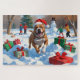 Pitbull Hund läuft im Schnee mit Weihnachtshut Puzzle