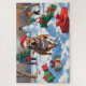 Ein kräftiger und spielerischer Pitbull schlängelt durch die verschneite Landschaft und trägt einen festlichen roten Weihnachtshut voll von Urlaubsstimmung. Die fröhliche Winterlandschaft spiegelt die Energie, Loyalität und den Charme dieser geliebten Rasse wider, die den Zauber der Saison mit der Persönlichkeit des Pitbull vermischt.