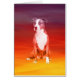 Ein niedlicher Pitbull Hund sitzend mit farbenprächtigem Hintergrund, eine Geschenkidee für jemanden, der diesen Hund züchtet.