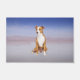 Ein niedlicher Pitbull Hund sitzend mit farbenprächtigem Hintergrund, eine Geschenkidee für jemanden, der diesen Hund züchtet.