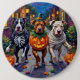 Adorable Pitbullen, die in verspielten Halloweenkostümen gekleidet sind, tragen Kürbiseimer, während sie unter dem mondbeleuchteten Himmel tricksen oder sich behandeln. Dieses festliche Design unterstreicht die muskulöse Bauweise der Rasse, die ausdrucksvollen Augen und die liebevolle Persönlichkeit, die perfekt die sprichwörtliche und dennoch lustige Atmosphäre Halloween-Abends einfängt. Eine kühne und herzliche Feier für Hundefreunde und Halloween-Fans gleichermaßen.