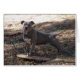 Diese Grußkarte sagt: "Selbst die lustigen Dinge machen keinen Spaß, wenn du weg bist. Beeil dich!" Diese Karte zeigt ein Foto eines Blue Nose Pitbull namens Sarge. Sarge ist stehend mit seinen Vorderfüßen auf seinem Lieblingsspielzeug, einem Skateboard. Seine Hinterbeine sind ausgestreckt und seine Ohren sind hoch und wachsam, wenn dieser Hund dich in einer gut aussehenden Pose anschaut.