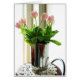 Diese Karten, T - Shirt und andere Gegenstände sind mit einem Foto aus rosa Tulpen in einem glänzenden Metallhaken geschmückt.
