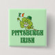Dieses St Patrick Tagesausrüstungsbeschreibungen ein niedliches Cartoon-Kleeblatt, das ein grünes Derby tragen und eine irische Flagge wellenartig bewegen und der Titel "Pittsburgh-Iren" im Großen grünen Text.